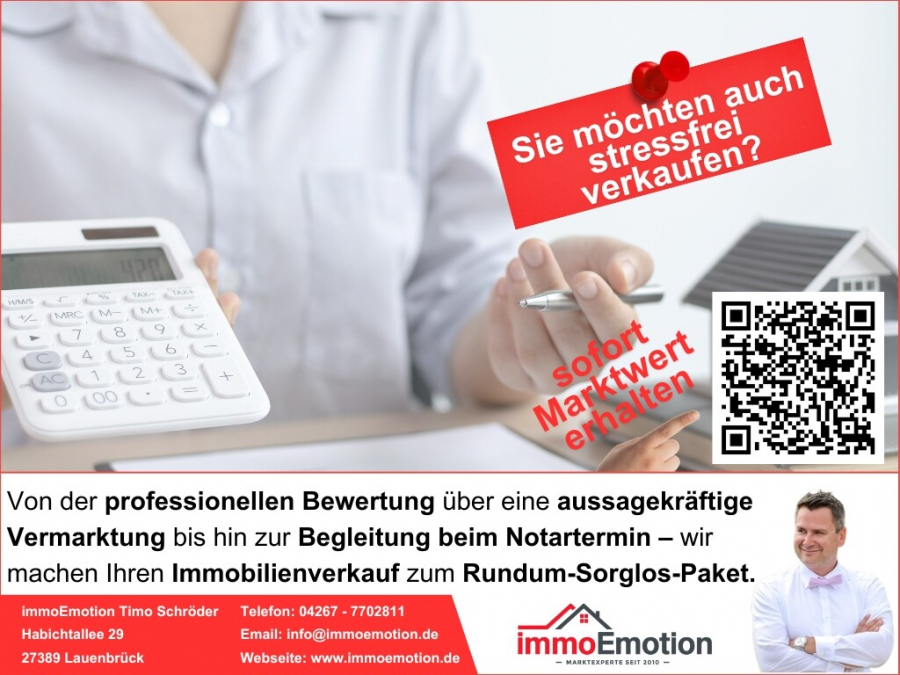 ImmoEmotion hat sich auf den Verkauf und die Vermietung von Wohn- und Gewerbeimmobilien spezialisiert. Seit über 10 Jahren sind wir erfolgreich am Immobilienmarkt tätig. Wir verkaufen und vermieten sowohl klassische als auch außergewöhnliche Objekte bevorzugt in den Kreisen Rotenburg (Wümme) und Heidekreis. Dank bester regionaler Kontakte und eines gut ausgebauten Netzwerks vermarkten wir Immobilien diskret und erfolgreich. Mit hohem Engagement, ausgeprägter Kompetenz und großer Motivation begleiten wir unsere Kunden bei allen Schritten der Immobilienvermittlung. Beste Referenzen sprechen für unseren professionellen und zuverlässigen Service. Sollten Sie weitere Informationen über unsere Dienstleistungen wünschen, besuchen Sie gerne unsere Homepage unter www.immoemotion.de oder folgen Sie uns auf Instagram und Facebook. Im Vorfeld bieten wir Ihnen gerne eine kostenfreie und unverbindliche Bewertung Ihrer Immobilie an. Provisionshinweis